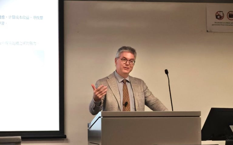 To illustrate this process, Professor Palmer drew on the Chinese classic Journey to the West as a metaphor for global business expansion, describing internationalization as a modern-day “pilgrimage for wisdom.” He suggested that companies need not only strategic vision, but also adaptability, local sensitivity, and institutional resilience. More importantly, he emphasized that businesses should not rely solely on macro-level policy analysis. They must also learn to listen to voices at the community level and understand the lived realities of local society. He described this shift as a movement from being an “outsider” to becoming a “co-builder” — an organization that participates in the social fabric of a place rather than remaining a distant investor.