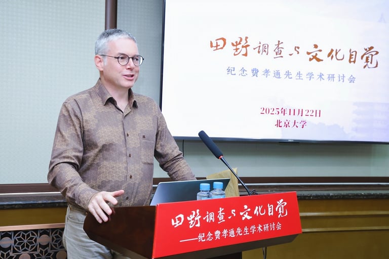 11月22日,由北京大学社会学系、北京大学社会学人类学研究所与中国社会与发展研究中心联合主办的 “田野调查与文化自觉——纪念费孝通先生学术研讨会” 在北京大学英杰交流中心正式召开。在“美美与共”分论坛中,香港大学教授 宗树人(David A. Palmer) 受邀发表题为 “Can We Universalize Civilizational Anthropology?”(我们能普遍化文明人类学吗?) 的学术演讲。